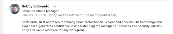 By reframing support as a relationship rather than a transaction, Scott empowers your team to deliver faster resolutions, reduce friction, and build trust across the organization. His mentoring not only strengthens technical confidence but also enhances professionalism, teamwork, and pride in service—creating a more cohesive, user-focused IT department that stands out for the right reasons.